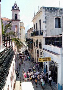 El famoso restaurante enclavado en el corazón de la vieja Habana abrió sus puertas en 1942 y entre los usuarios más asiduos a la Bodeguita del Medio figuraban intelectuales que acudían después de realizar gestiones en una imprenta cercana. Adoptó su nombre por hallarse situada, precisamente, en el centro de la calle Empedrado, muy cerca de la Plaza de la Catedral. A un periodista se le ocurrió poner su nombre en la pared y así comenzó una iniciativa que aún perdura. Entre las múltiples rúbricas que aparecen están las de Pablo Neruda, Agustín Lara, Brigitte Bardot, Ignacio Villa (Bola de Nieve), Ernest Hemingway y Salvador Allende. Lugar ideal para degustar la típica comida cubana a base de arroz, frijoles negros, plátanos fritos, cerdo asado y tasajo entomatado, junto a yuca con mojo criollo.